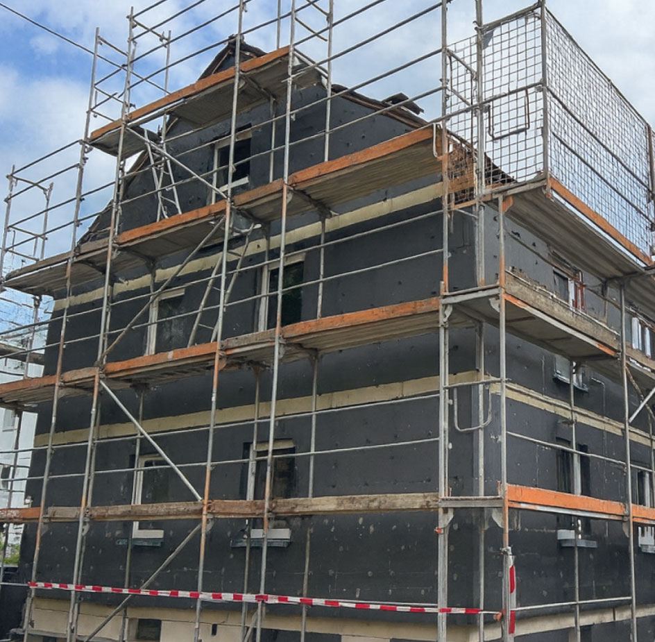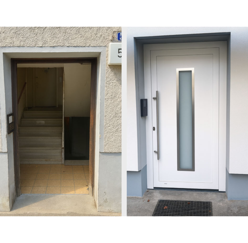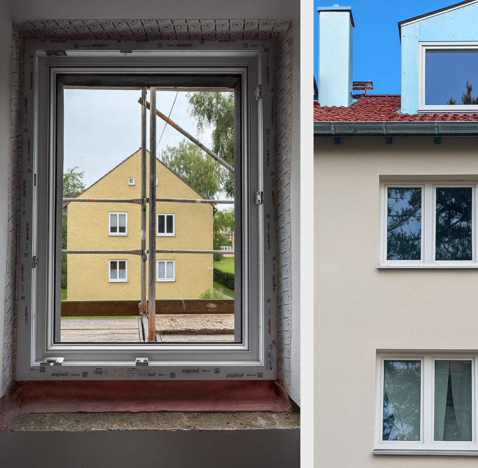 Das Sanierungsprojekt in der Eichendorffstraße 5–7 in Memmingen umfasst eine umfassende energetische und optische Modernisierung des Bestandsgebäudes. Ein wesentlicher Bestandteil der Maßnahmen ist die energetische Optimierung der Gebäudehülle durch das fachgerechte Dämmen und Verputzen der Fassade. Ergänzt wird diese Aufwertung durch den Einbau moderner, dreifach verglaster Fenster sowie neuer, hochwertiger Haustüren, die sowohl den Sicherheitsstandard als auch die Isolierung des Objekts deutlich verbessern. Auch im Dachbereich wurden umfangreiche Arbeiten durchgeführt: Das Gebäude erhielt eine neue Dacheindeckung, in deren Zuge auch der Neubau von Dachgauben realisiert wurde, was zusätzlichen Wohnkomfort und eine verbesserte Belichtung der Dachgeschossebene schafft. Durch diese aufeinander abgestimmten Sanierungsschritte wird das Objekt in Memmingen nachhaltig für die Zukunft aufgestellt.